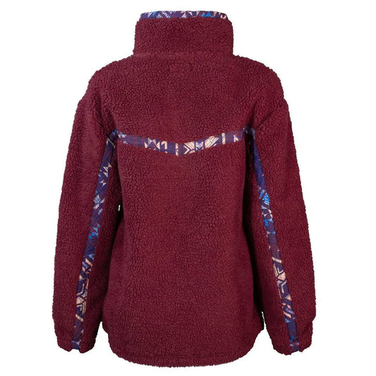 "LADIES SHERPA PULLOVER" PINK W/ PURPLE AZTEC ACCENTS