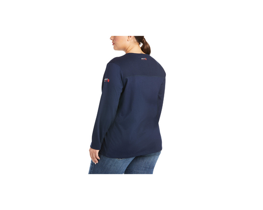 ARIAT 10022698 WOMENS FR AC CREW LONG SLEEVE T-SHIRT NAVY