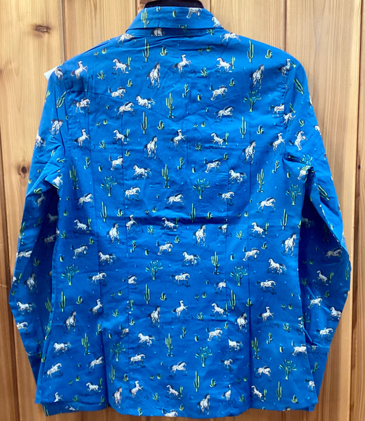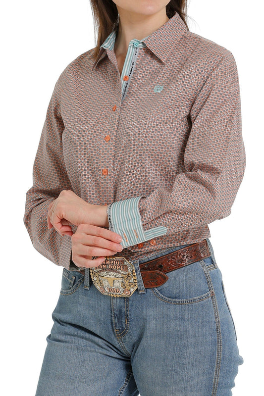 CINCH WOMEN'S CORAL/LIGHT BLUE PRINT LONG SLEEVE BUTTON DOWN WESTERN SHIRT