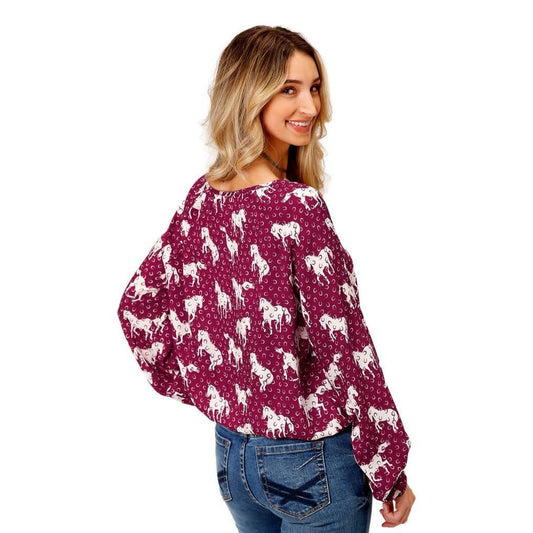 Roper Western Shirt Womens L/S Scoop Neck Red